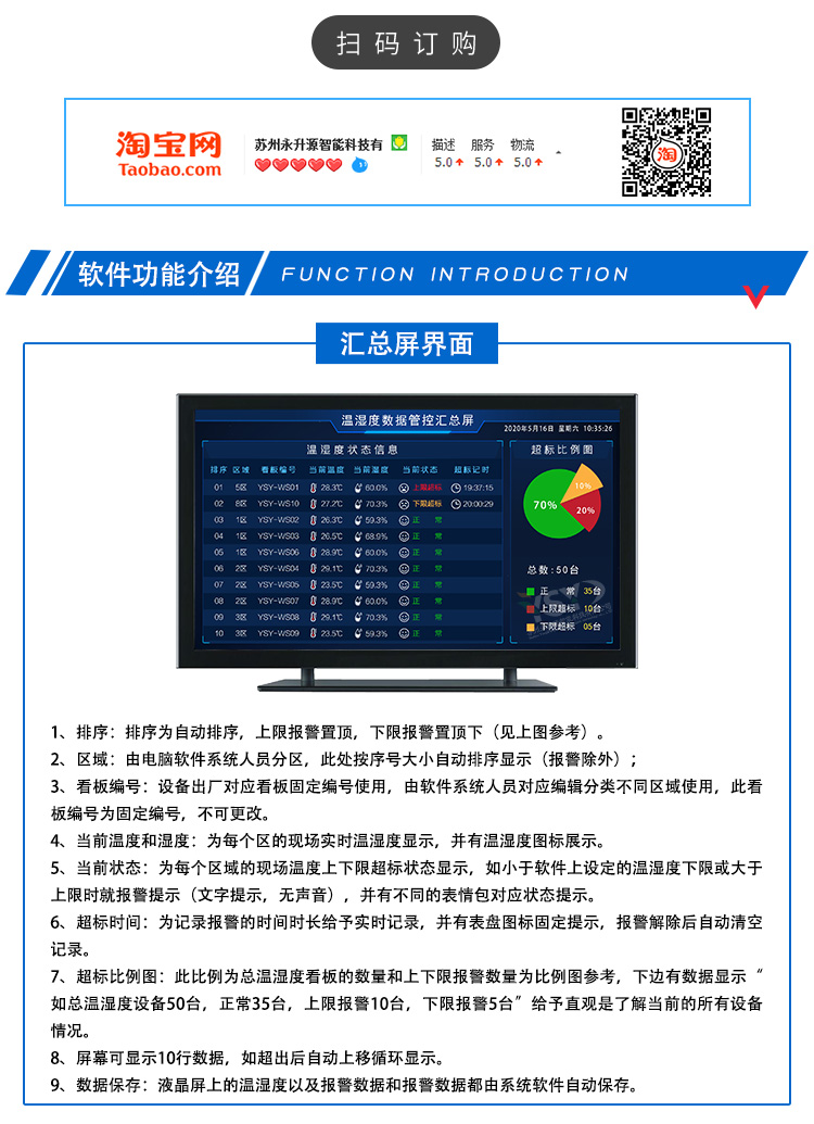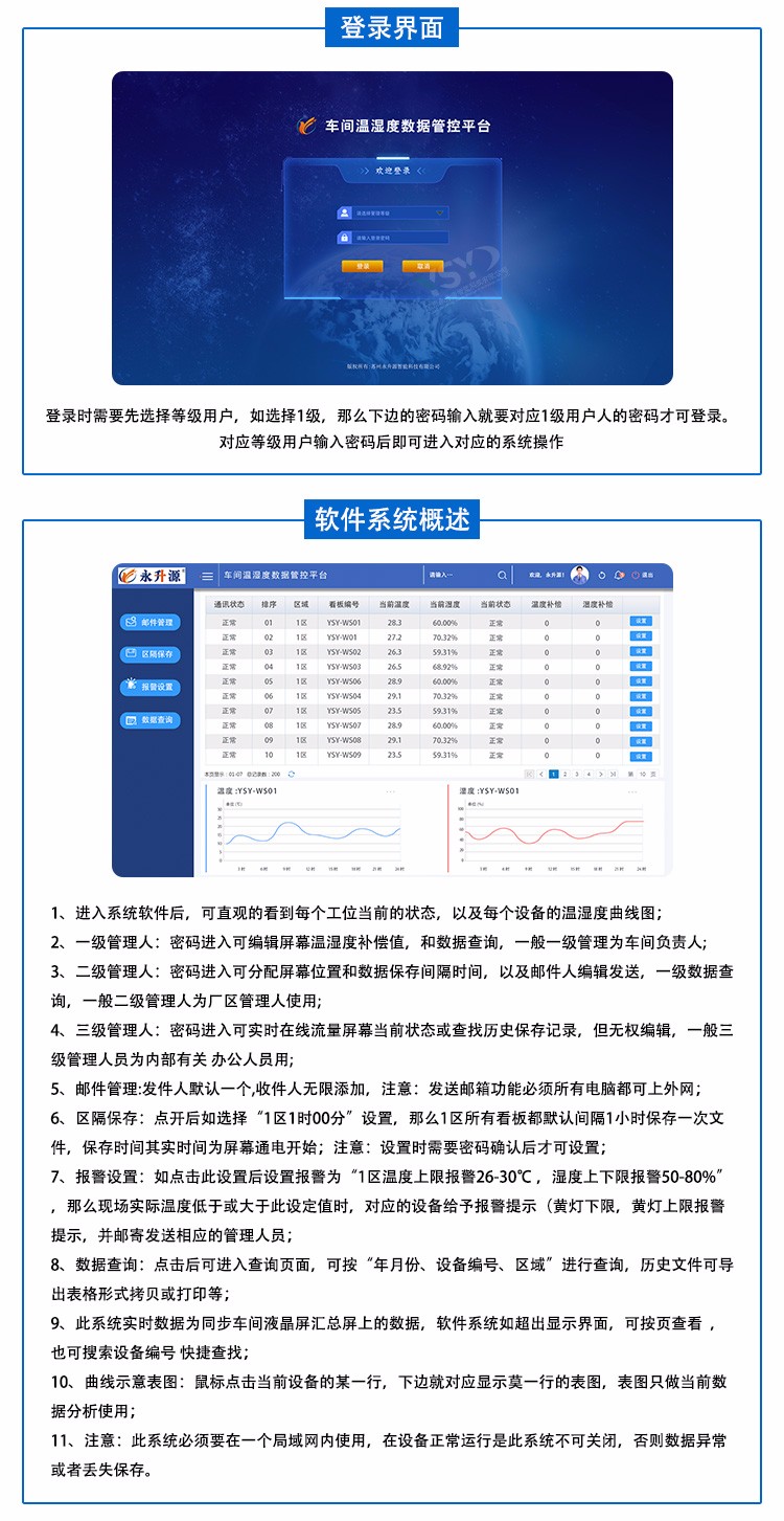 3、直观的人机界面办公室的管理层也能实时了解现场的温湿度变化情况。