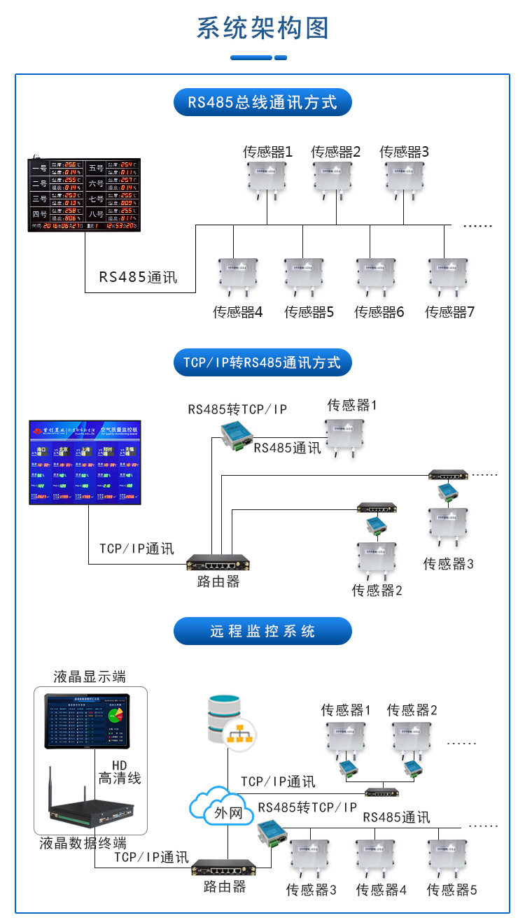 2、为了提供准确的颗粒浓度信息,可连接多个传感器并远程传输至大显示屏。