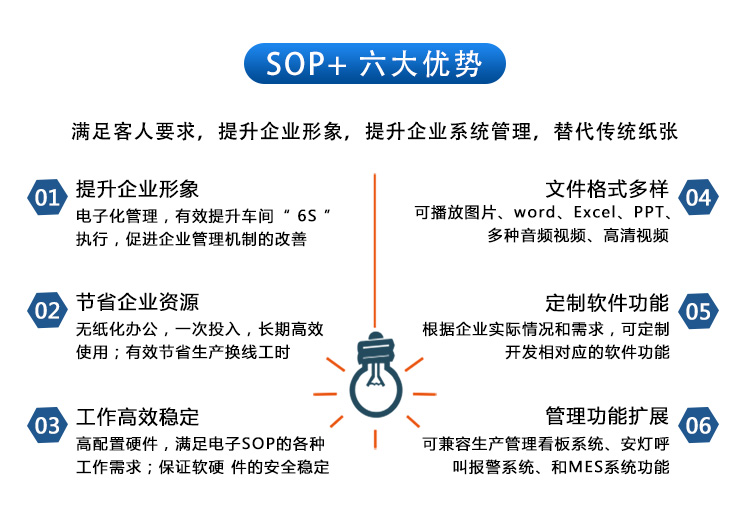 3、工作高效稳定:高配置硬件,满足电子SOP的各种工作需求;保证软硬 件的安全稳定。