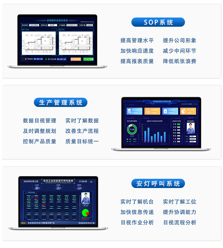 3、生产线异常通知:出现缺料、设备故障等异常,实时通报相关人员;