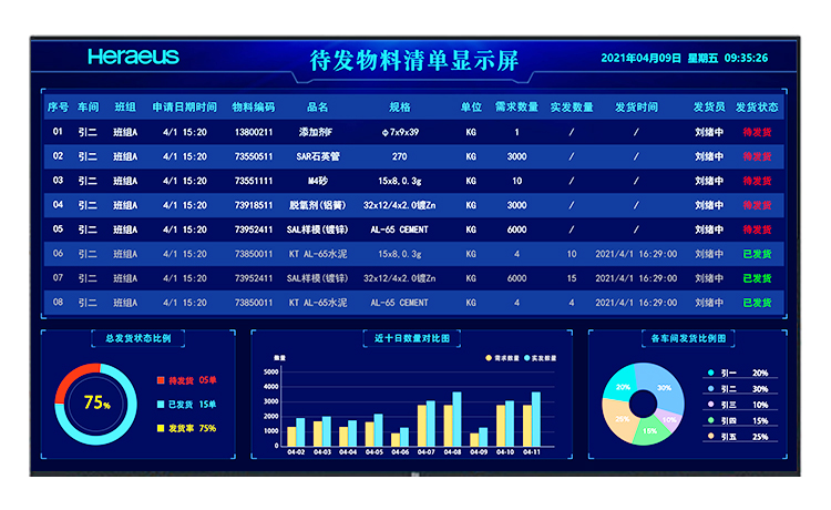 -仓库待发物料清单显示屏根据服务器待发物料清单显示待发物料列表;