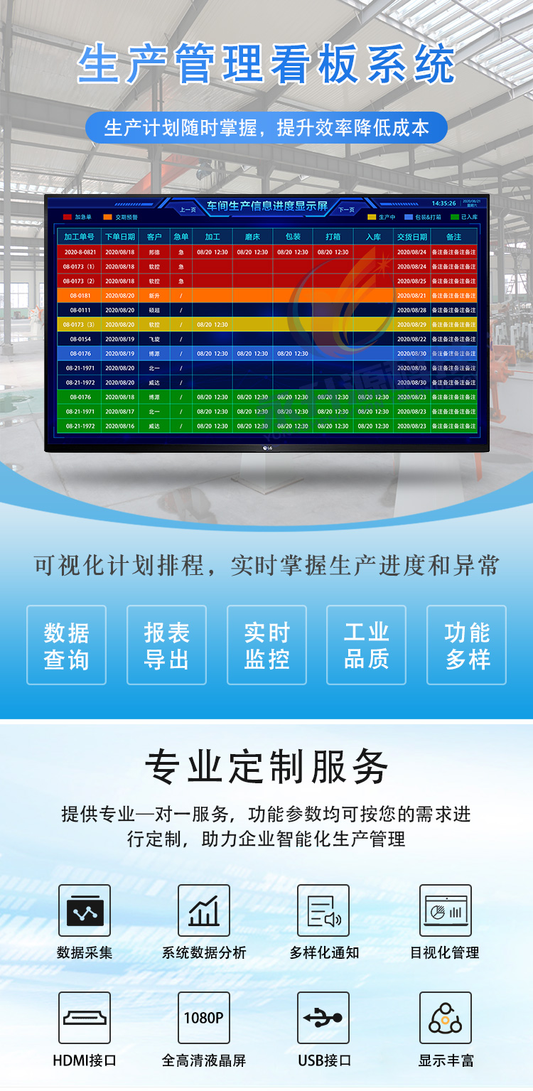 车间生产信息管理进度显示屏 MES产线计划进度液晶看板 生产排单